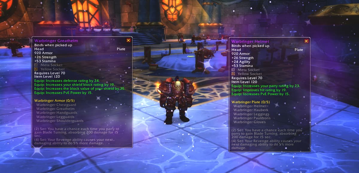 - The Warbringer Plate set has been added. This set is high in Stamina, Strength, Agility and also has some Hit, Dodge and Parry ratings.