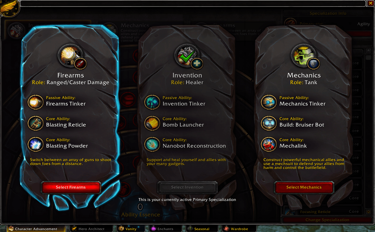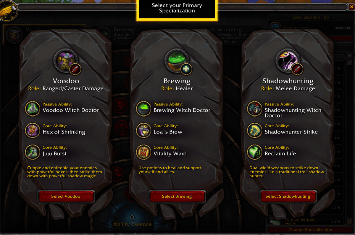 - Choosing a Specialization unlocks unique Passive Abilities, allowing each spec to feel unique and tailored to the role it performs.