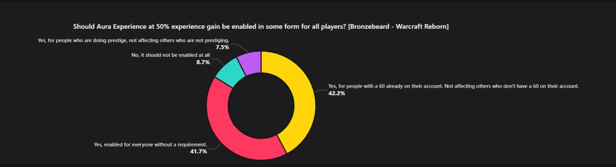A recent player poll on Bronzebeard revealed that the greater population would like to see the Aura of Experience active on Bronzebeard in some form.