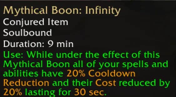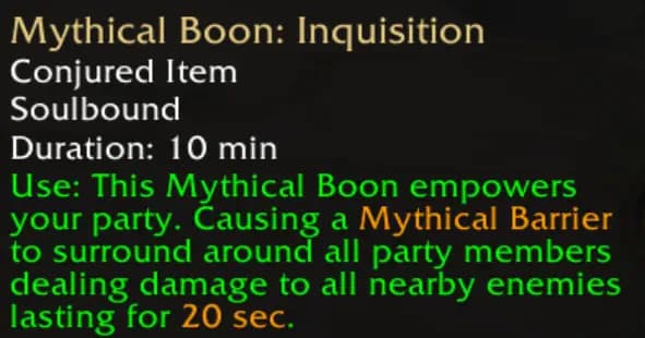 Luckily, there’s power inside Mythic Dungeons for you to wield: Mythic Boons are hidden objects located off the normal dungeon path that you can see out and use if you choose. When you find one of these boons, it will bestow its benefits in the form of an item to each member of your party. Party members can use these boons at any time to receive a powerful buff based on the boon, granting you strategic power when you need it most.