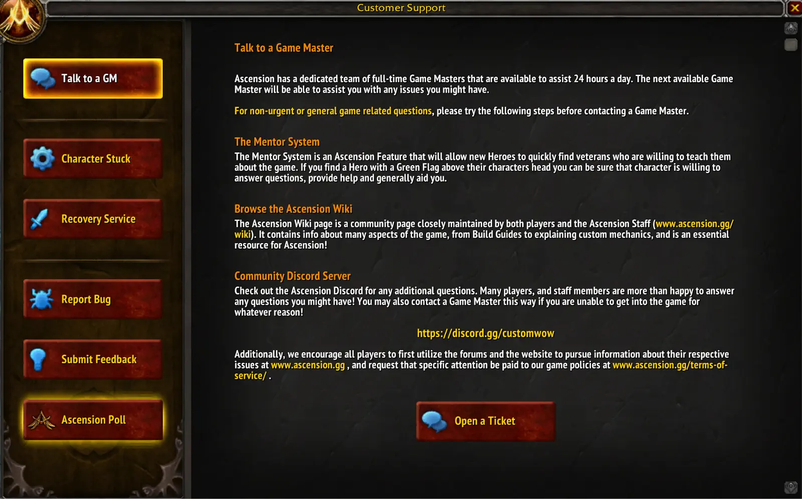• You can find the latest Ascension Polls by navigating to the help request menu, the red question mark in your action bar!