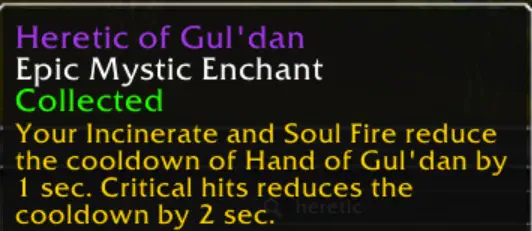 [Mage] [Epic: Brand of the Pyromaniac] In addition to making your next three Pyroblasts after using Combustion jump to 3 additional targets the secondary effect of this enchant has been tweaked. It now reads: Dealing direct damage with any Fire spell reduces the cooldown of Combustion and Cremation by 1.5 seconds.