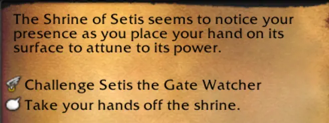 With this update, you can fight Heroic Versions of World Bosses, starting with Setis.