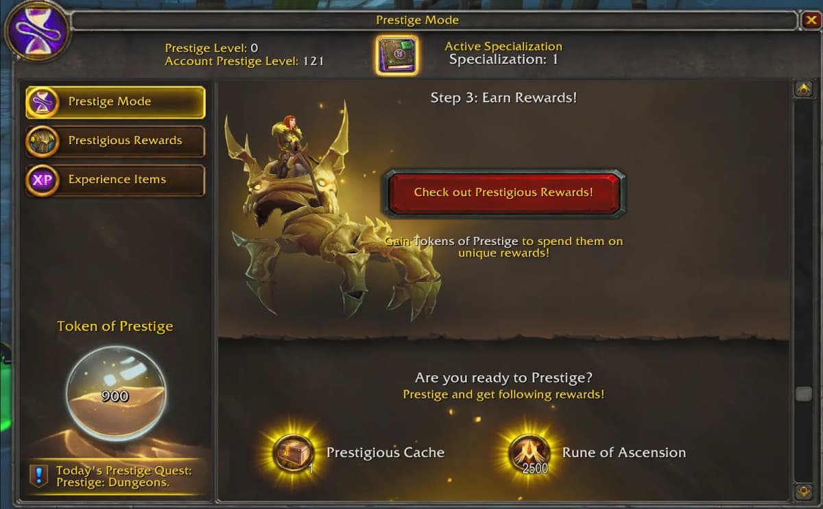 Each Prestige grants you Prestige Points, a unique currency that can be spent on exclusive rewards, including rare mounts, distinctive cosmetic items, special enchants, and powerful heirloom items to enhance future Prestiges. Prestige Points means every leveling journey adds tangible power and prestige to your character, solidifying your ongoing advancement.