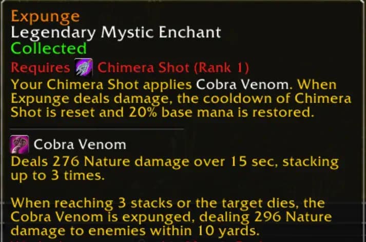 [Чернокнижник] [Эпический: Чистейшая Тьма] Это заклинание теперь срабатывает при использовании любого заклинания темной магии, а не только при использовании Стрел Тьмы и Ожога Тьмы.