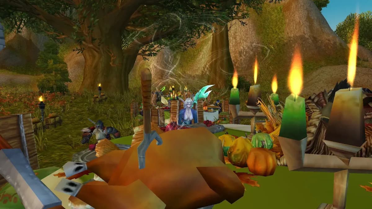 Основные празднования Праздника Благодарения проходят за полными еды столами, которые можно найти во многих зонах Калимдора и Восточных Королевств. Вокруг столов в крупных городах много различных сезонных торговцев и персонажей, дающих квесты; у них можно получить специальные ингредиенты для приготовления пищи и связанные с ними ежедневные квесты.