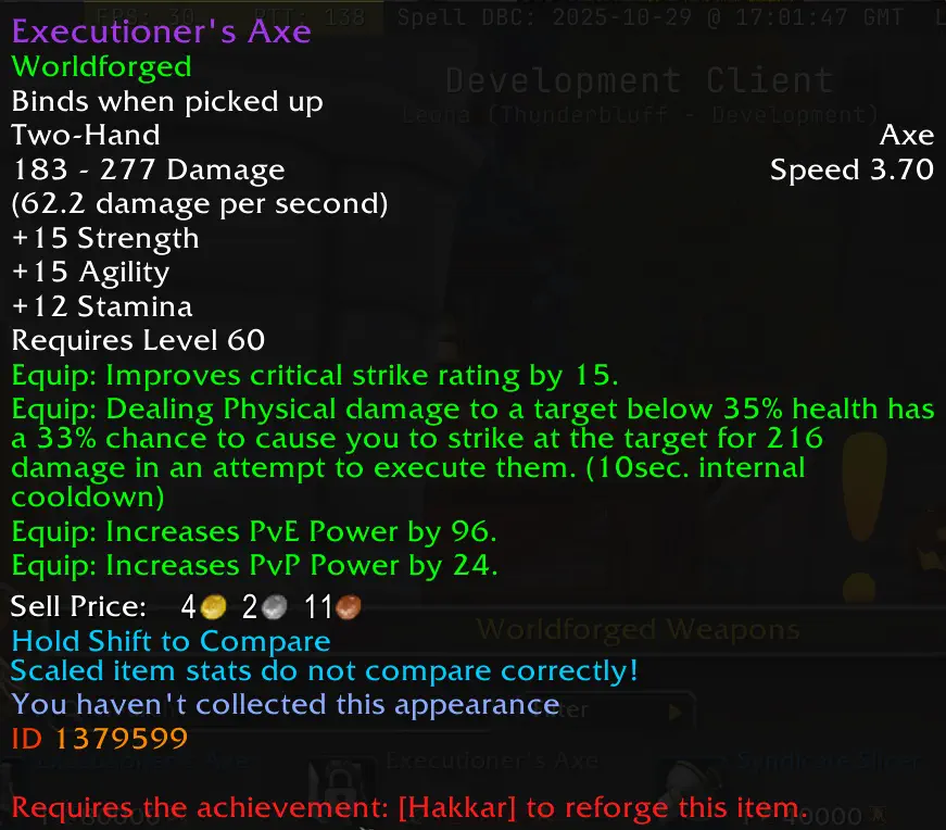 With the release of ZG, you’ll be able to upgrade your Worldforged Items into stronger versions, rivaling ZG items. You’ll need to clear ZG and defeat Hakkar first in order to upgrade these items.